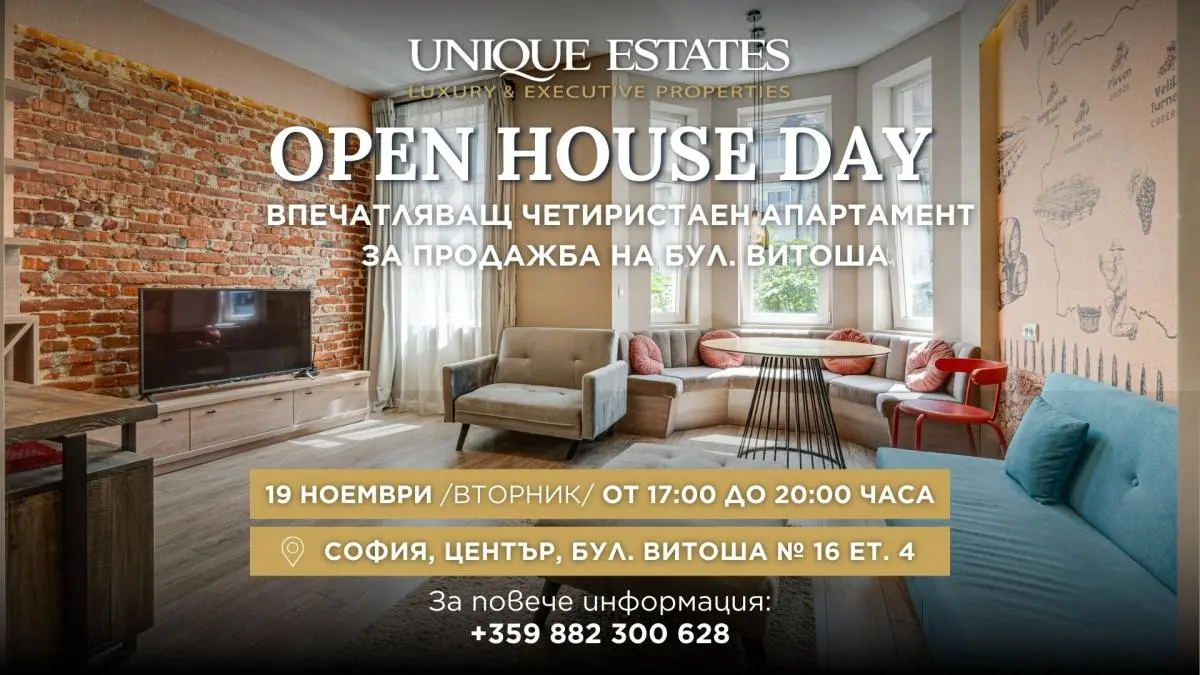 Open House Day на впечатляващ четиристаен апартамент за продажба на бул. Витоша